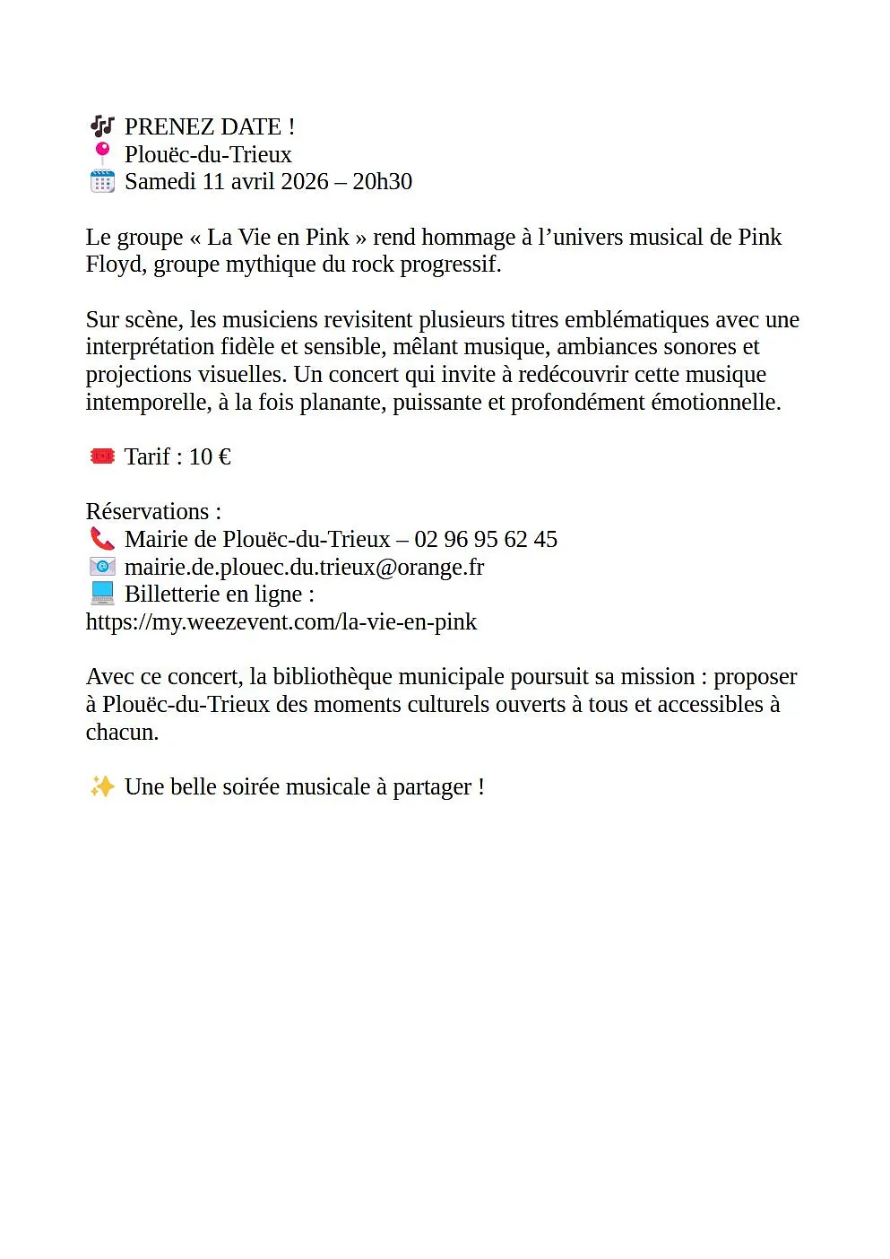 🎶 PRENEZ DATE ! 📍 Plouëc-du-Trieux 🗓 Samedi 11 avril 2026 – 20h30