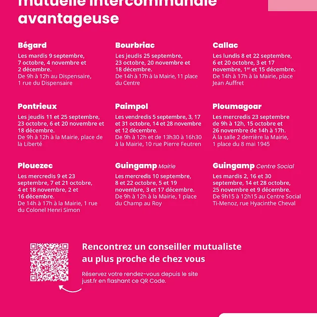 Pour découvrir, comparer et souscrire l'offre de mutuelle intercommunale, rencontrez un conseiller de la Mutuelle Just en permanence !