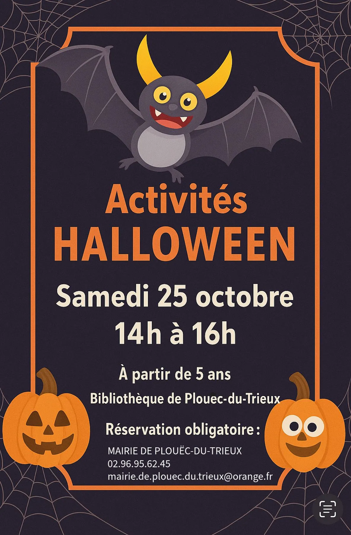 Réservation obligatoire : Mairie au 02 96 95 62 45 ou mairie.de.plouec.du.trieux@orange.fr