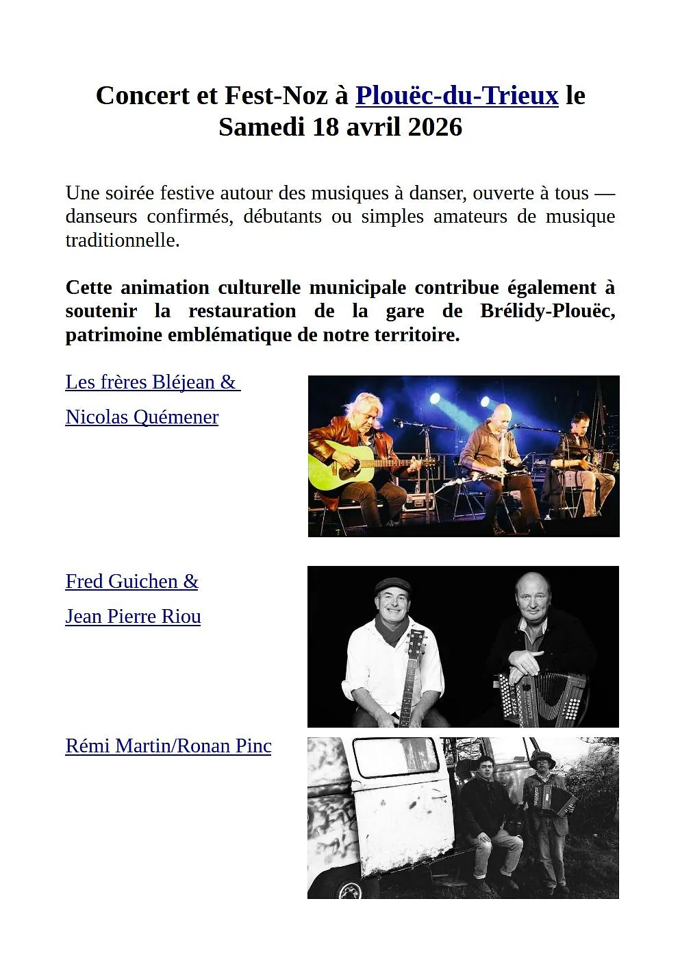 Cette animation culturelle municipale contribue également à soutenir la restauration de la gare de Brélidy-Plouëc, patrimoine emblématique de notre territoire. En savoir plus.