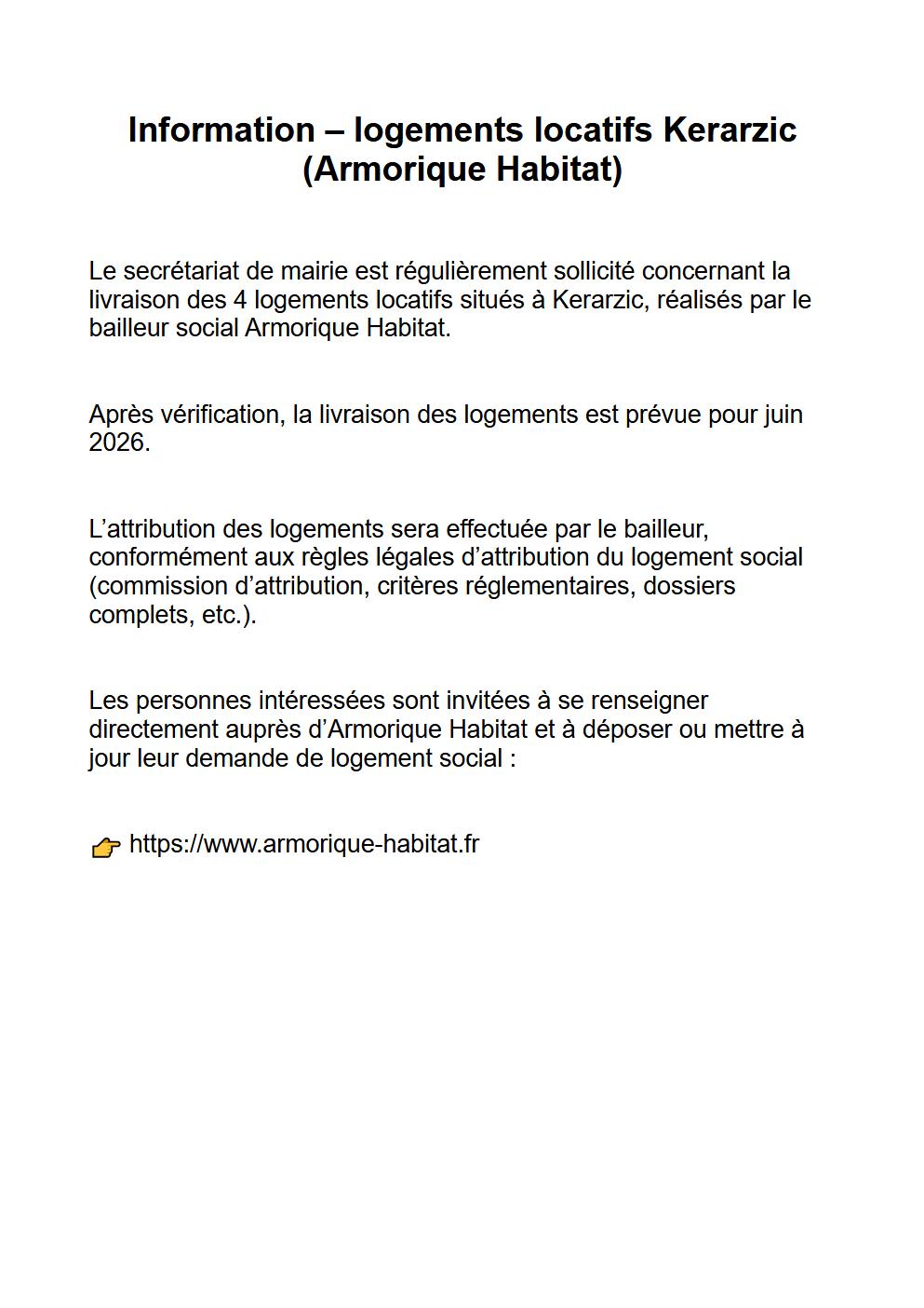 Information – logements locatifs Kerarzic (Armorique Habitat)