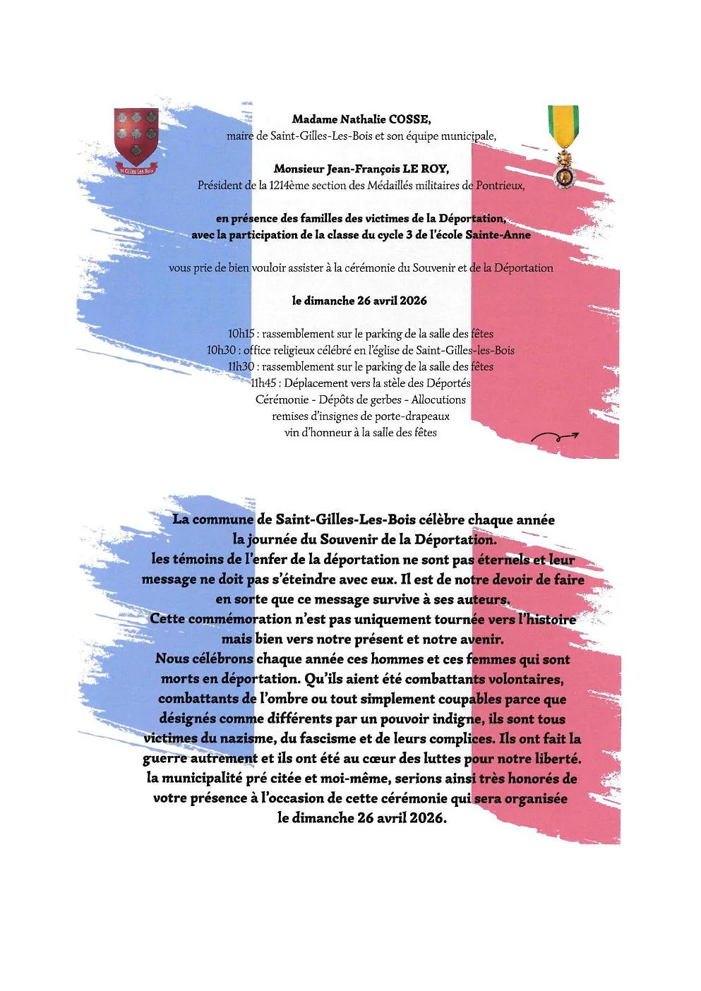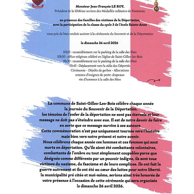 10h30 office religieux - 11h45 déplacement vers la stèle des Déportés