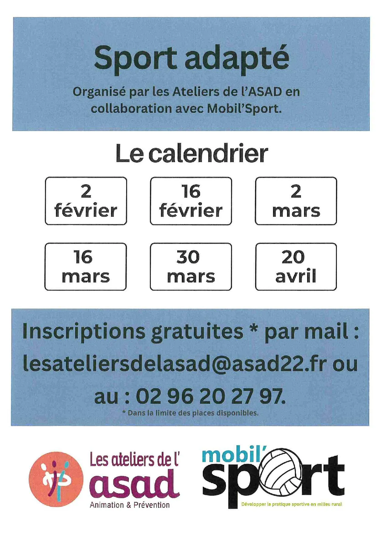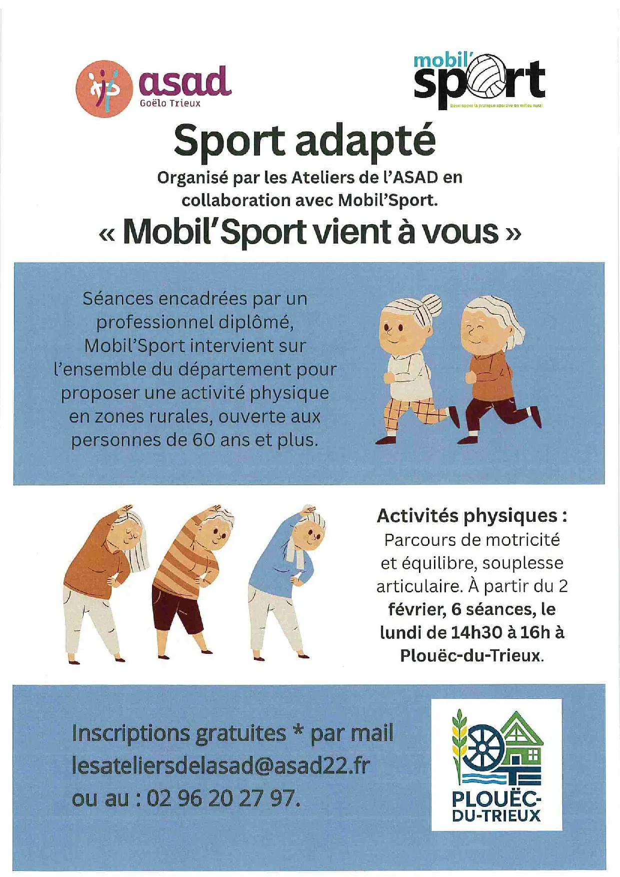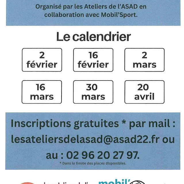 6 séances à partir du 02 février 2026, le lundi de 14h30 à 16h00 à Plouëc du Trieux