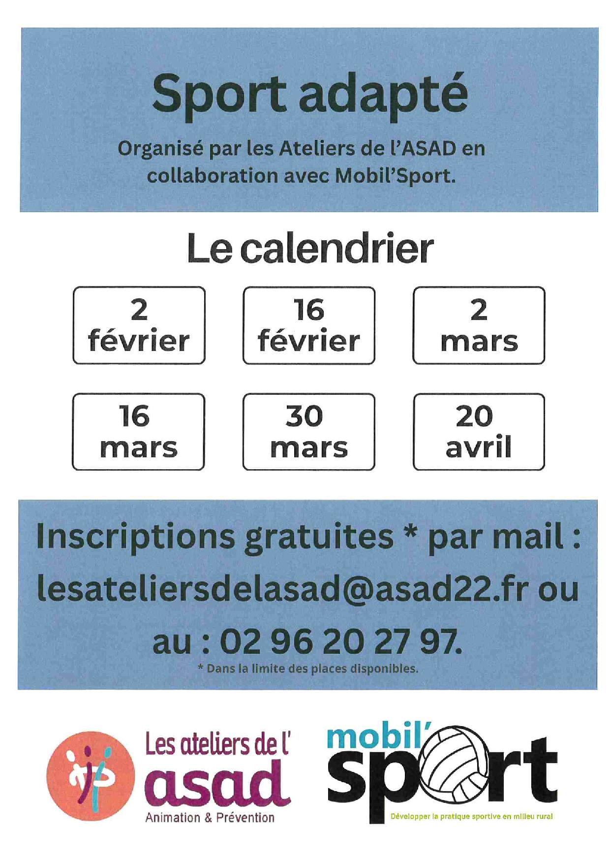 Les ateliers de l'ASAD vous propose une activité physique ouverte aux personnes de 60 ans et plus.