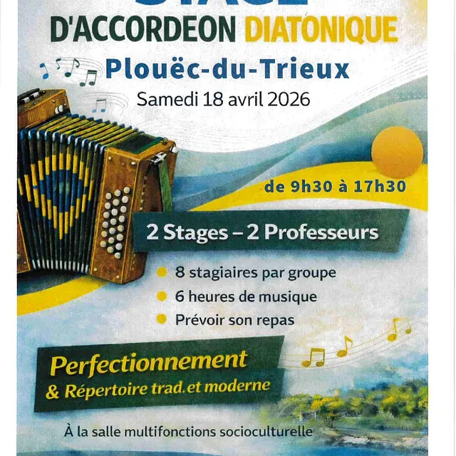 STAGE D'ACCORDEON DIATONIQUE Plouëc-du-Trieux Samedi 18 avril 2026