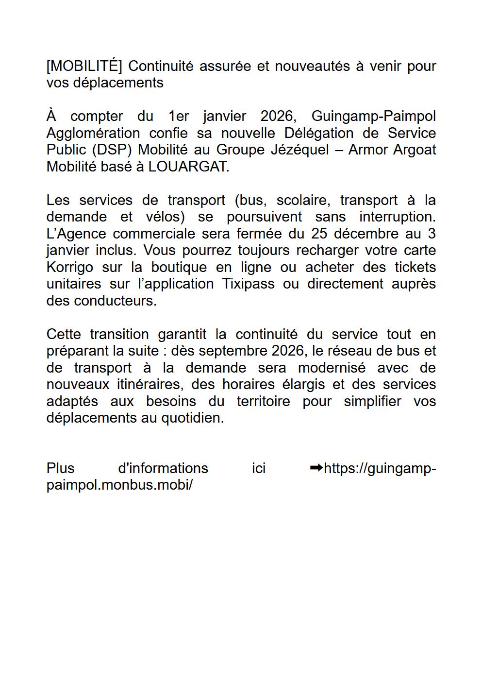 Découvrez le réseau de transport de Guingamp-Paimpol Mobilité